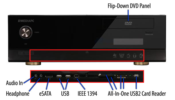 First I considered a ready-made e-machine HTPC like the one shown above. These small computers are equipped with a 1.7GHz Athlon II processor, 2GB RAM, 160GB HD, NVIDIA GeForce 9200, and Windows 7 Home Premium 64-bit, all for around $300. They can mount directly on the back of the TV and can get the job done streaming movies and providing the internet and network connectivity. However, they lack a TV tuner, are not expandable, and once you purchase the wireless keyboard and mouse, get a new modem, it's still going to cost $400. Certainly a contender, but it had limitations.