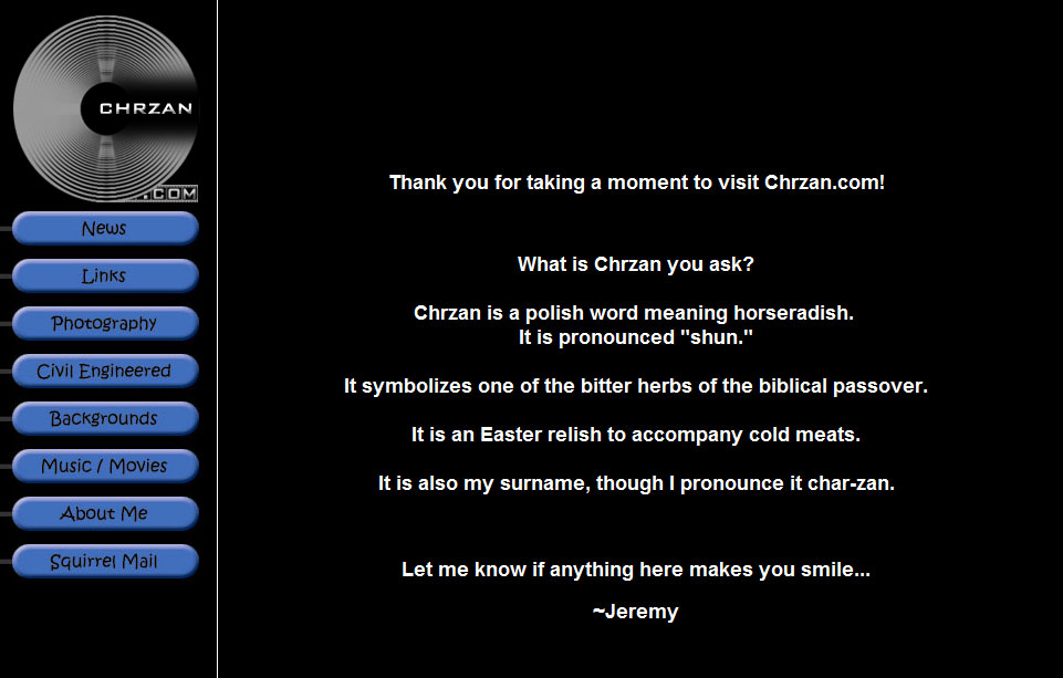 Past screenshots of Chrzan.com can be viewed by clicking the images below, or visit the wayback machine to see them all in action.